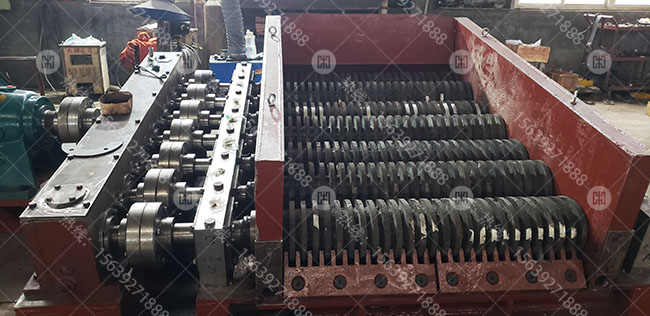 本系列輥軸篩是由輥道電機(jī)單獨(dú)驅(qū)動(dòng)的多根篩軸組成的滾動(dòng)篩面,每根篩軸上裝有篩片,篩軸與減速機(jī)用過載聯(lián)軸器聯(lián)接,既起過載保護(hù)作用,又便于維修。在滾軸篩的入口端裝有電動(dòng)擋板,物料既可通過篩面進(jìn)行篩分,又可以經(jīng)旁路通過。