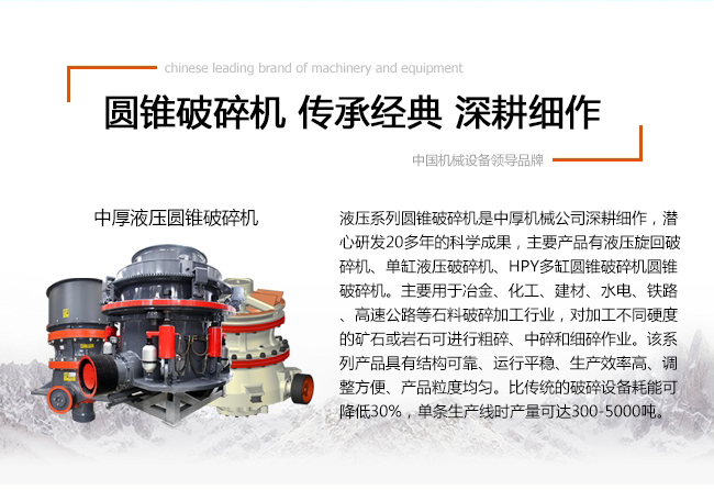 | 中厚機械系列液壓圓錐破碎機,能耗低,粒形美觀 |
