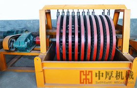 3、回收率高:本機采用磁塊為專用強磁塊,使磁盤磁場均勻,磁力線加長,使?jié){中磁性礦物質(zhì)得到充分回收,效益提高。
