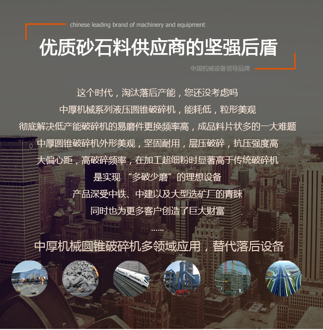 | 中厚機械系列液壓圓錐破碎機,能耗低,粒形美觀 |